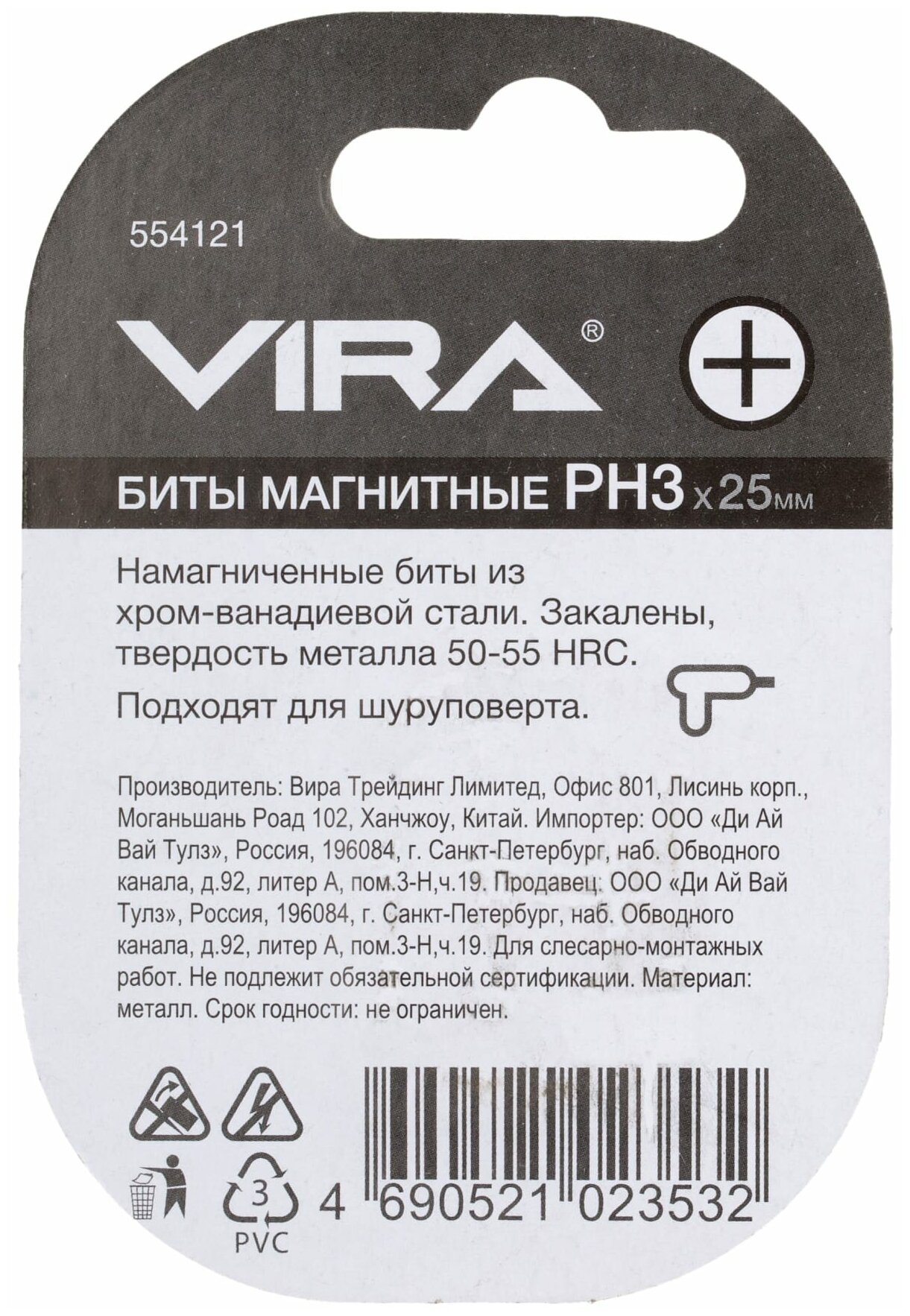 Magnetic bits Vira PH3, 25 mm, 2 pcs.