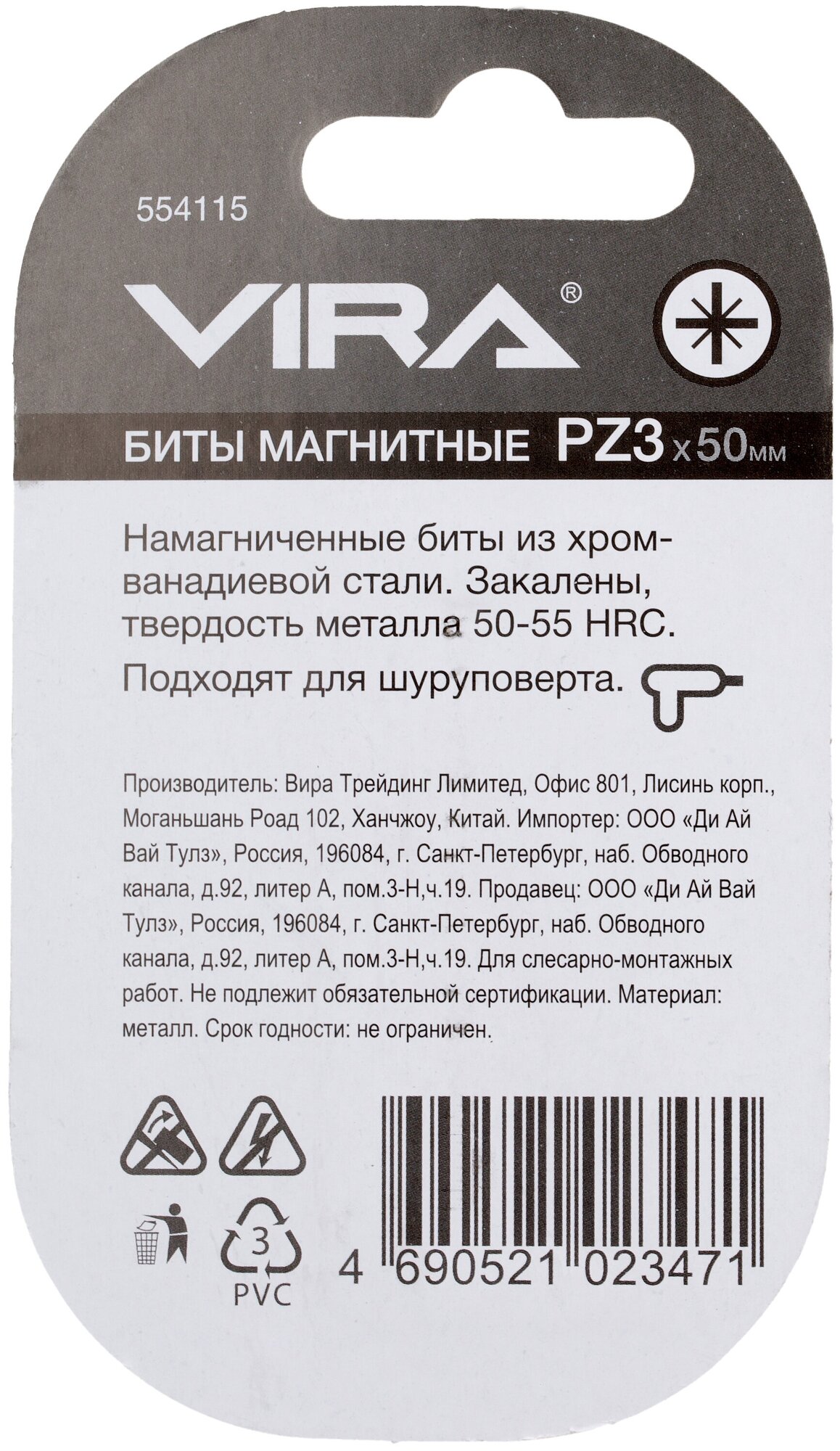 Magnetic bits Vira PZ3, 50 mm, 2 pcs.