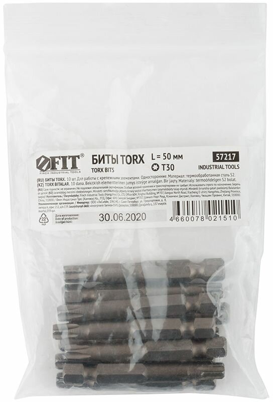 Bits steel S2, one-sided 50 mm T30, 10 pcs. FIT 57217