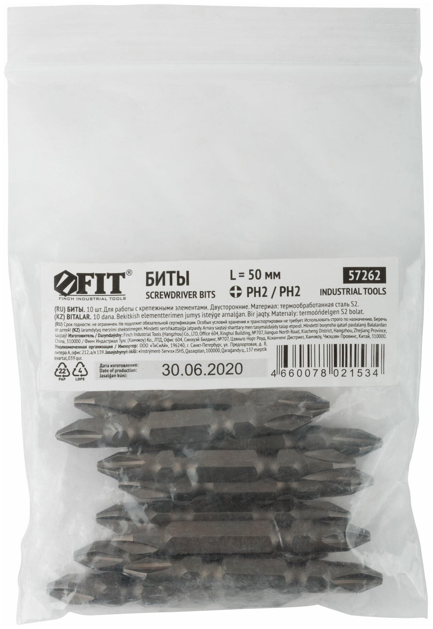 Bits steel S2, double-sided 50 mm PH2/PH2, 10 pcs.