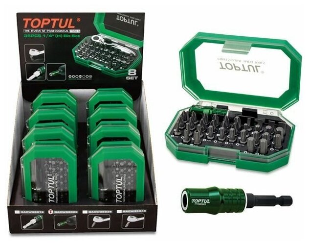 Bit set 1/4 with magnetic holder 8 sets TOPTUL GACW3502S