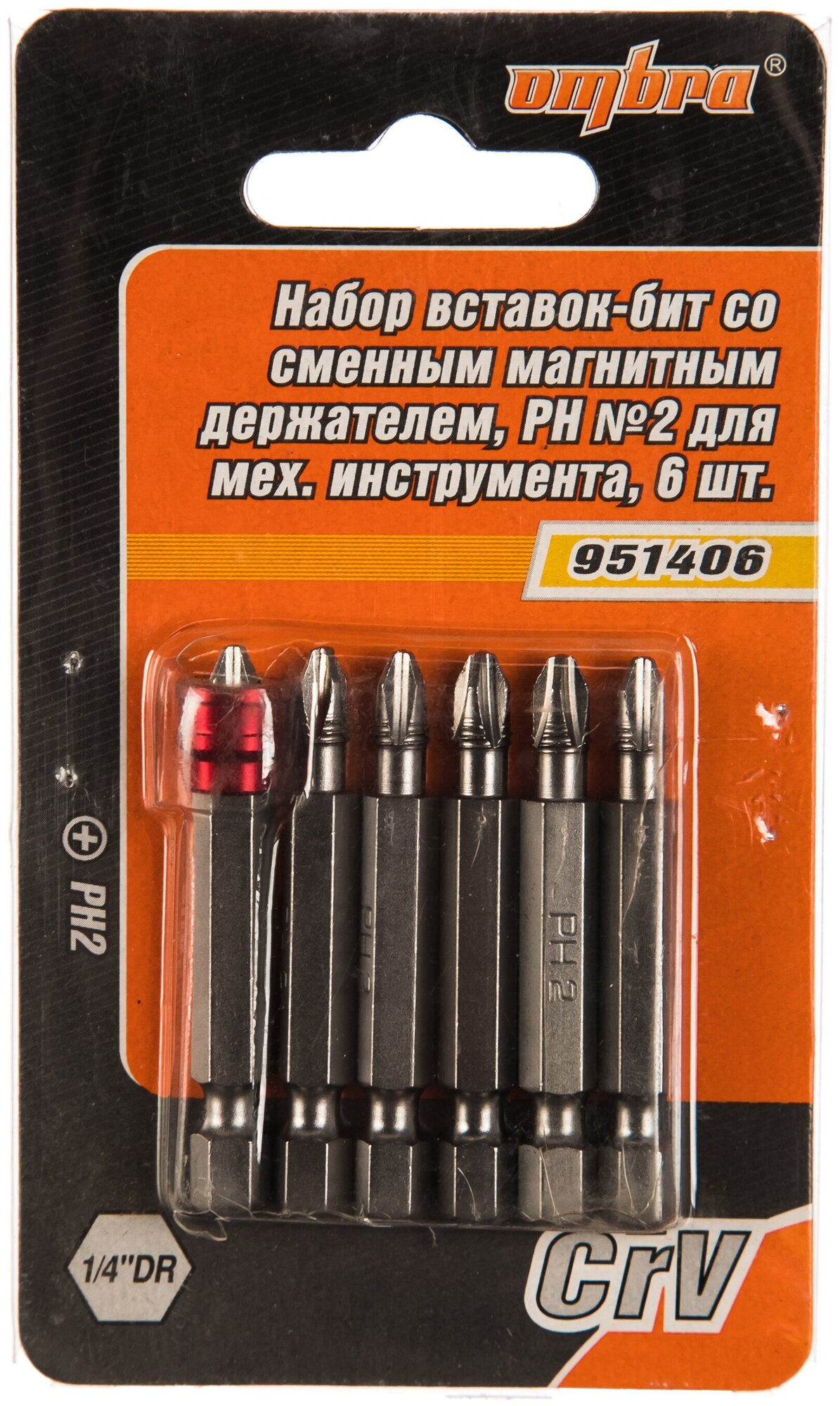 Set of bit inserts with interchangeable magnetic holder PH2, 50 , 7 pcs. Ombra 951406 15736350