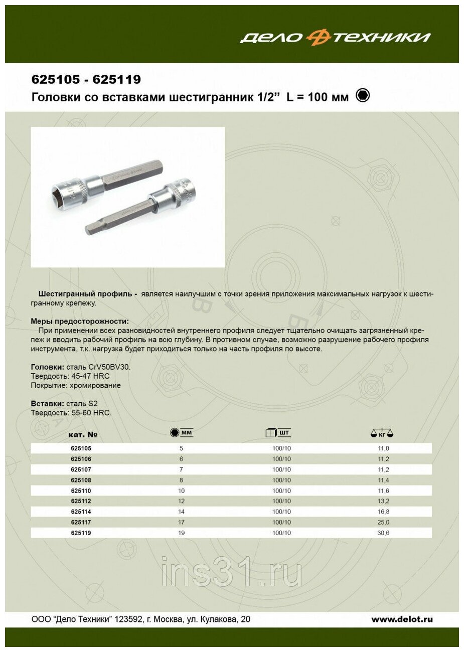 -head 1/2 HEX6 L=100mm Case Technique 625106