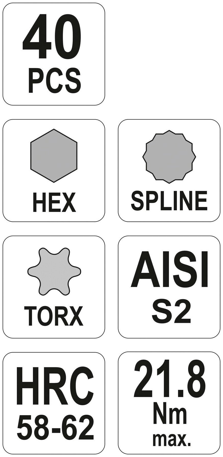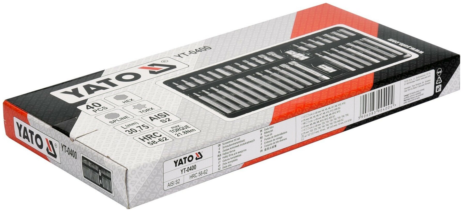 Yato bits, special, set of 40 pieces, HEX, SPLINE, TORX, AISI S2, HRC 58-62, in metal box