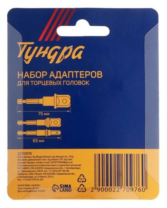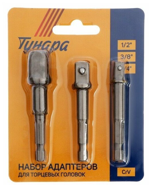 TUNDRA socket adapter set, CrV steel, 1/2 x 75, 3/8 and 1/4 x 65 mm, 3 pcs. 2270976