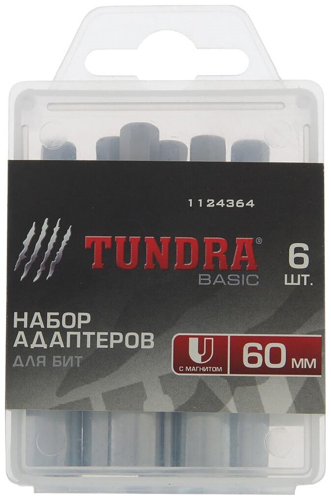 Bit adapter set Tundra Basic, with magnet, 60 mm, 1124364, 6 pcs