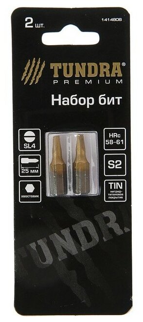 Tundra bits, magnetized, steel S2, TiN, SL4 x 25 mm, 2 pcs.