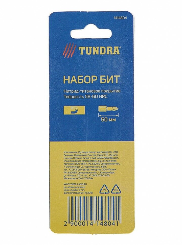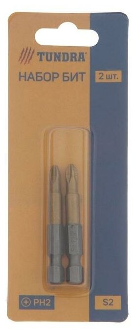 Tundra bits, magnetized, steel S2, 58-60 HRC, TiN, PH2 x 50 mm, 2 pcs.