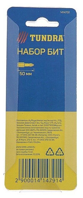 Type: bit, tip type: PH1, tip shape: cross, length: 50mm