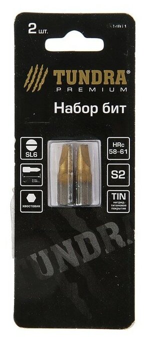 Tundra bits, magnetized, steel S2, TiN, SL6 x 25 mm, 2 pcs.