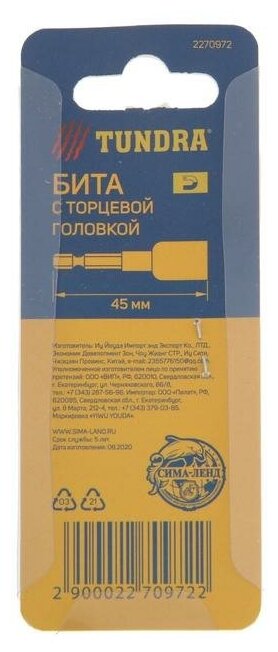 Type: bit, bit type: one-sided, magnetic adapter, tip shape: hexagon, length: 45 mm
