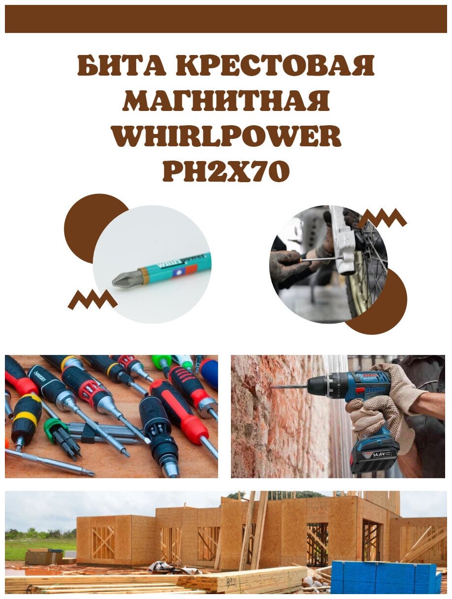 Magnetic bits for a screwdriver bit set 10 pcs. WHIRLPOWER size PH2x70mm