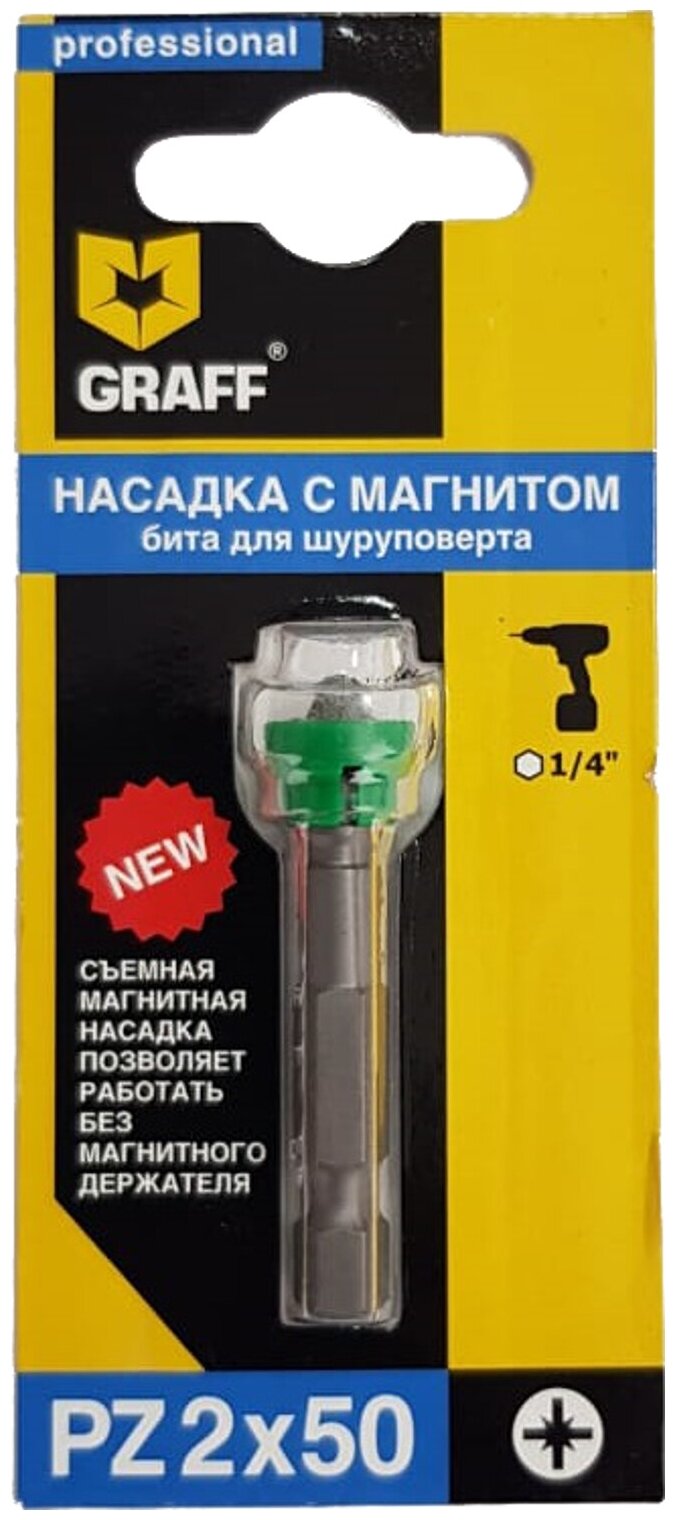 Type: bit, bit type: single-sided, tip type: PZ2, magnetic adapter, tip shape: cross, length: 50 mm