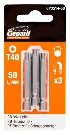 Nozzle TORX T40 50mm 3pcs GEPARD GP3514-50 bit sprocket six-pointed star S2