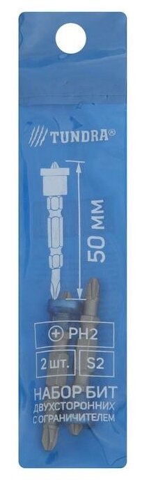 Bits double-sided CONSTRUCTIONE, steel S2, round magnet limiter, PH2 x 50 mm, 2 pcs.