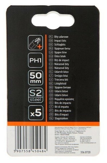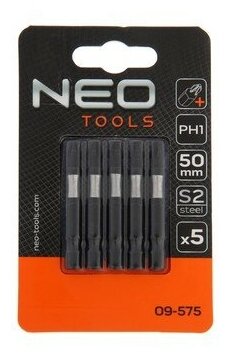 Impact bits NEO 09-575, PH1 x 50 mm, 1/4, S2, torque absorption system, 5 pcs.