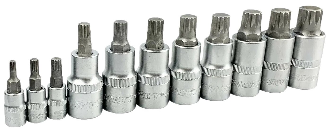 End bit set HASKYY XZN11-19 - SPLINE 1/4 M4-M5-M6, 1/2 M8-M16 11 items