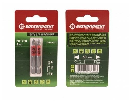 Type: bit, tip type: PH1, tip shape: cross, length: 50mm
