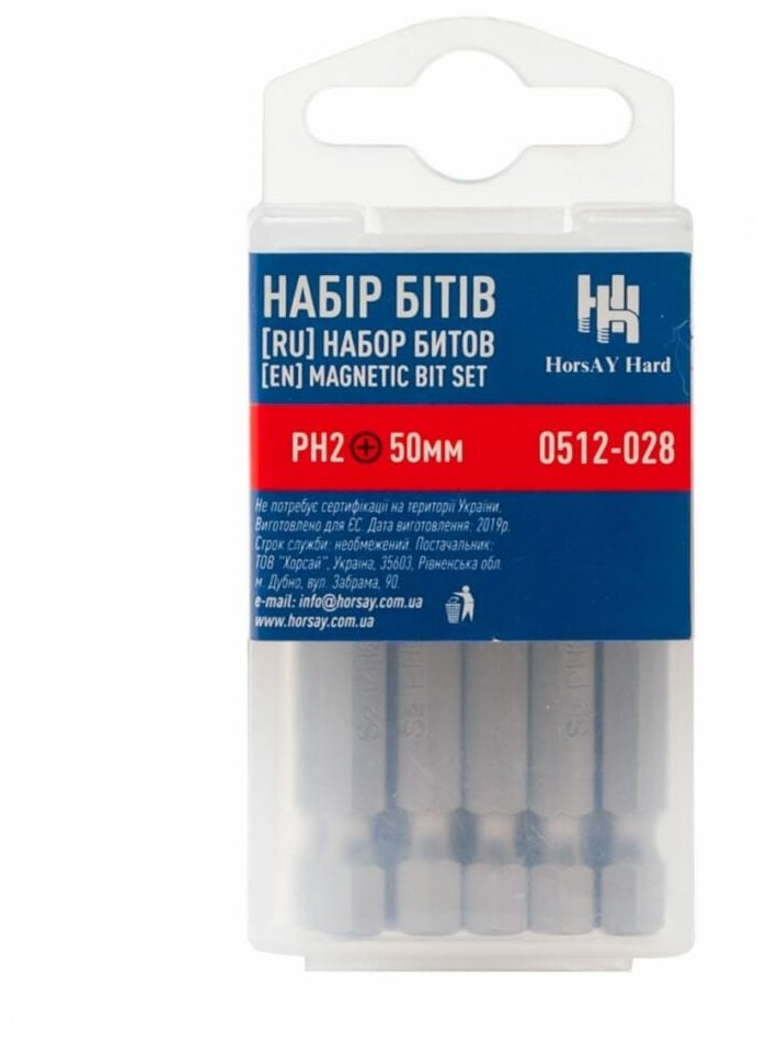 Type: bit, bit type: single-sided, tip type: PH2, magnetic adapter, tip shape: cross, length: 25 mm
