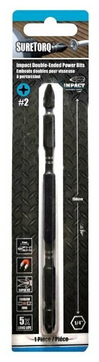 SureTorq bit for PH2+PH2 impact driver, 150mm, double ended