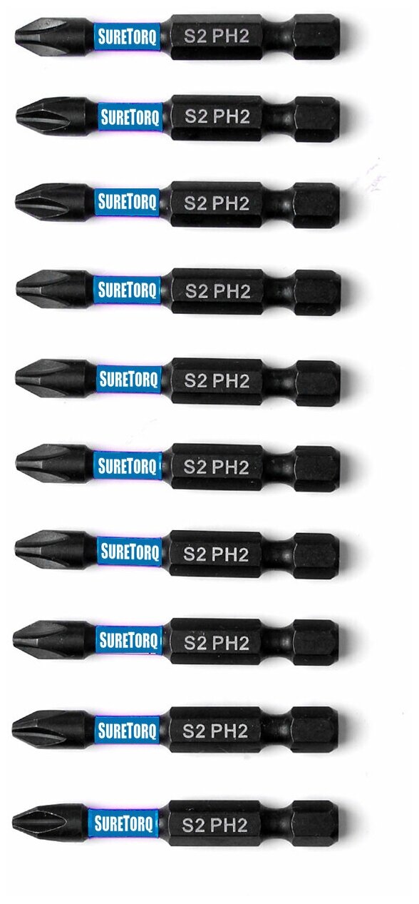 Bits SureTorq PH 2 * 50 mm for an impact screwdriver 10pcs on a hanger with a carabiner