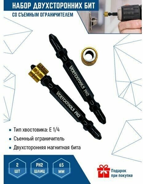 Type: bit, bit type: double ended, tip type: PH2, magnetic adapter, tip shape: cross, length: 65 mm