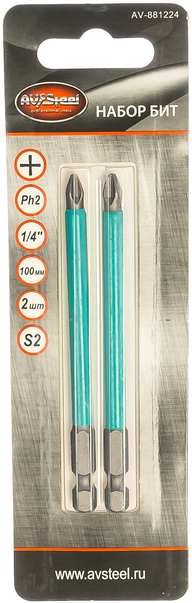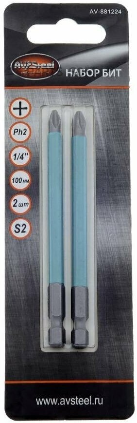 Bits PH2x100mm S2 2pcs AV Steel AV-881224 15859980