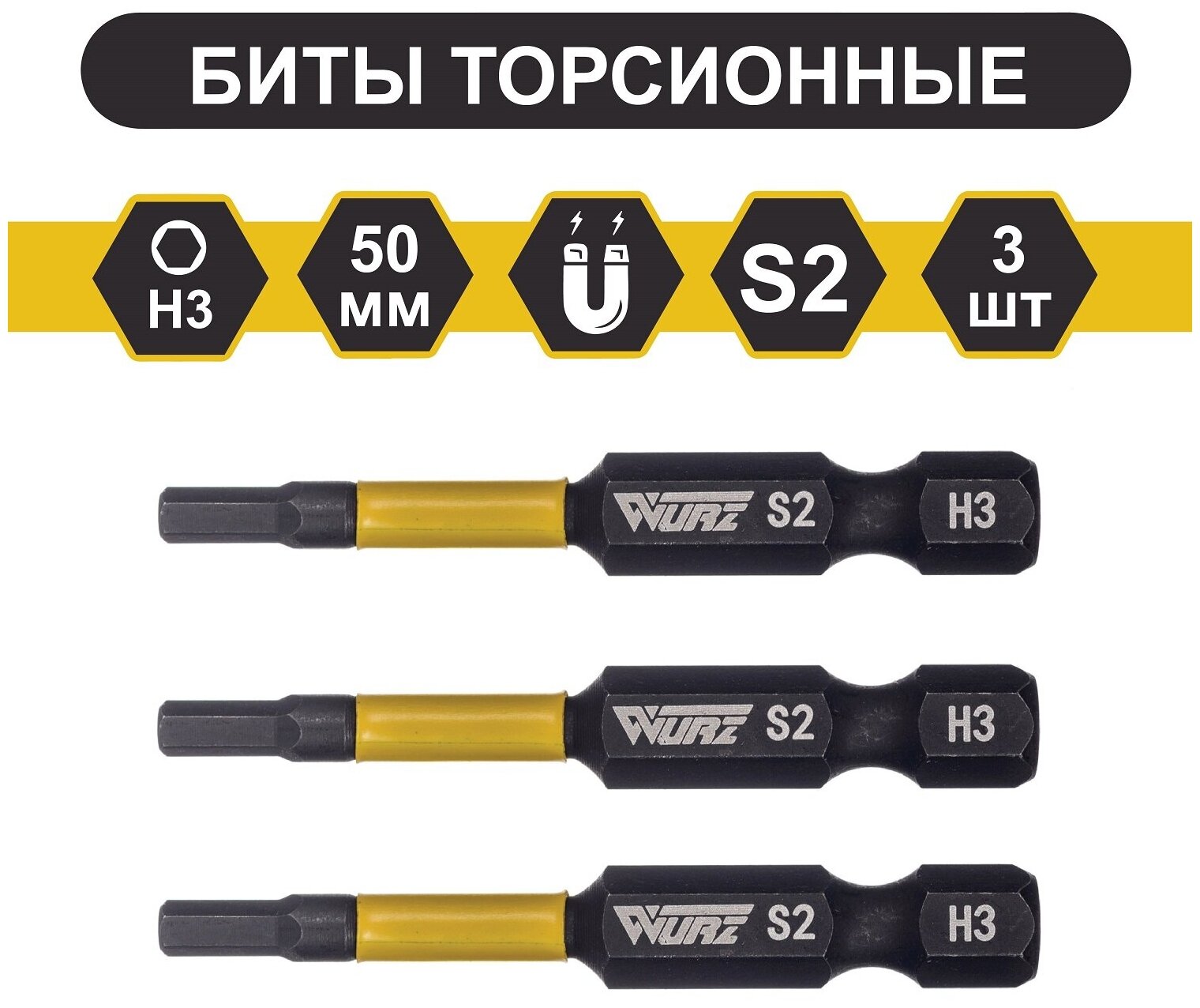 WURZ torsion magnetized HEX3 x 50mm S2 3pcs.