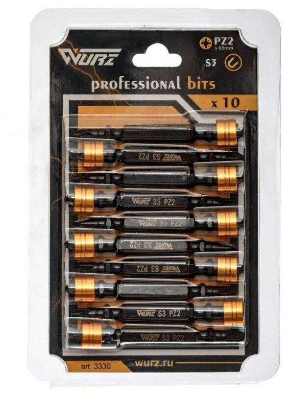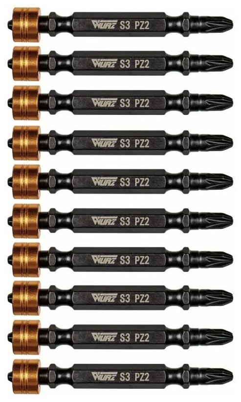 WURZ double-sided PZ2 x 65mm with removable magnetic holder 10pcs.
