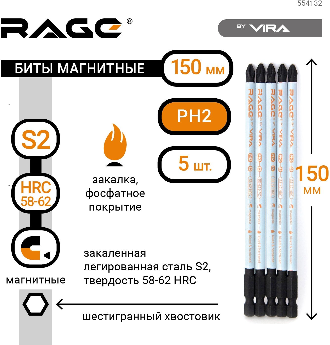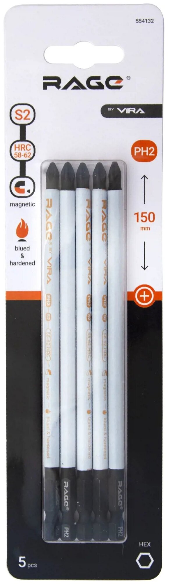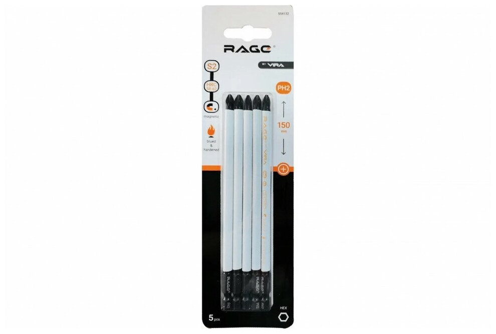 Magnetic bits S2 PH2x150mm 5 pcs. RAGE by VIRA