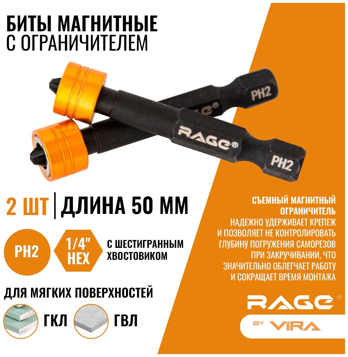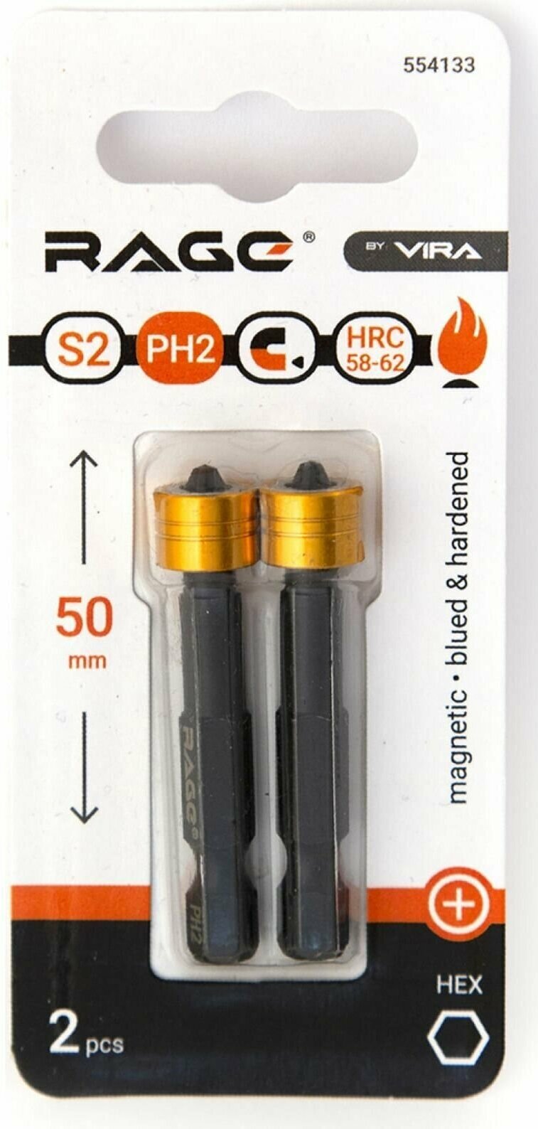 Magnetic bits with limiter S2 PH2x50mm 2 pcs. RAGE by VIRA
