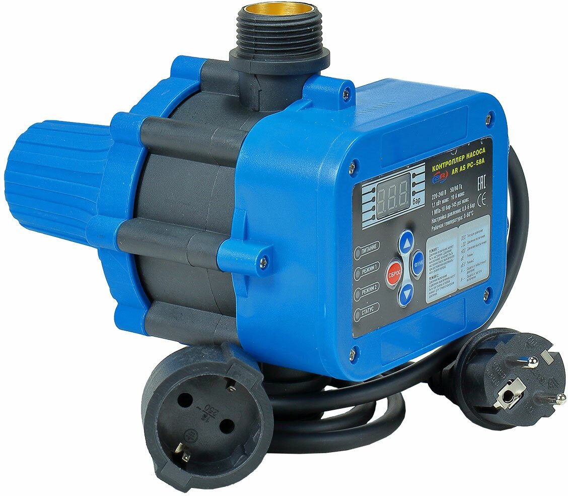 Type: pressure switch, connection diameter: 1, maximum pump power: 1100 W, maximum water temperature: 60 °C, maximum operating pressure: 10 bar, mains voltage: 220V, protection class: IP65