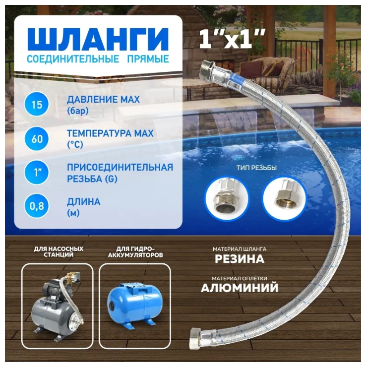 Type: Connecting hose, connection diameter: 1, maximum water temperature: 60 °C, maximum operating pressure: 15 bar, mains voltage: 220V, protection class: IP24