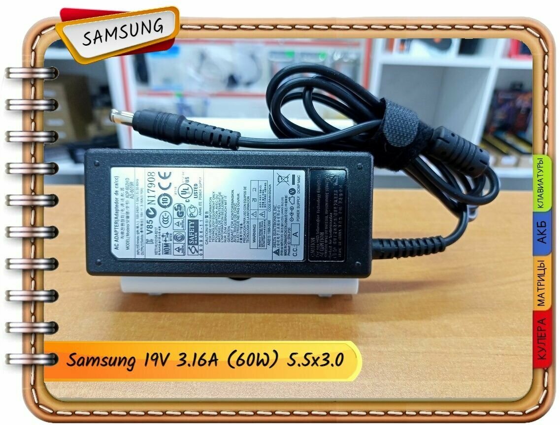 Type: laptop, compatibility: Samsung, connectors: 5.5 x 3.0 mm, output voltage: 19 V, power: 90 W, max. current: 4.74 A, features: short circuit protection, overheating protection, overload protection, AC protection