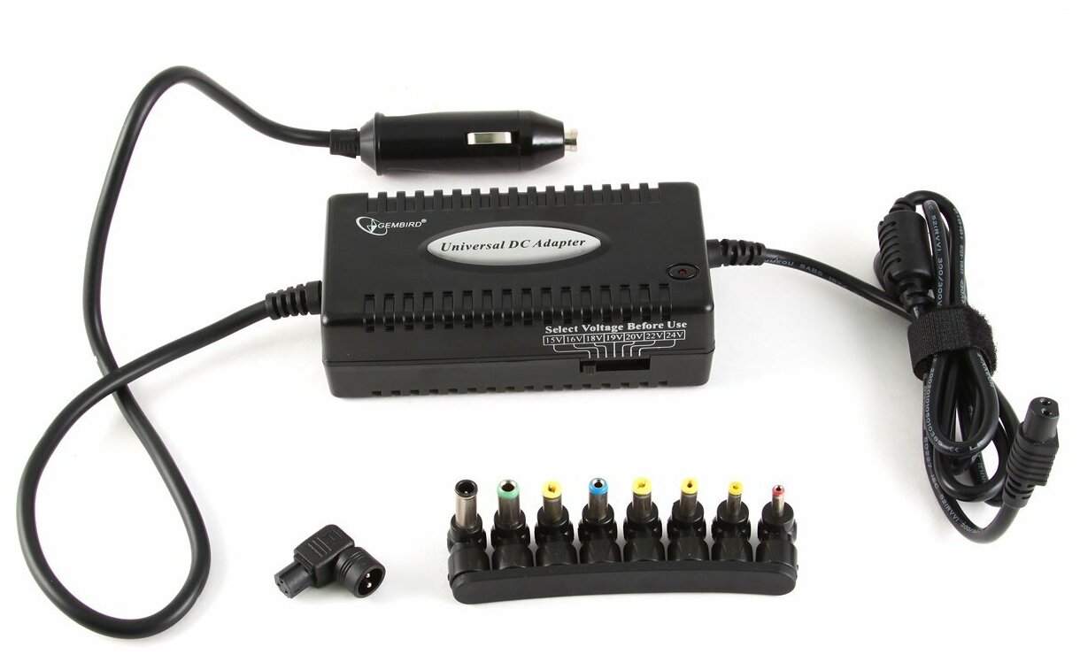 Type: for laptop, compatibility: universal, output voltage: 12V, 14V, power: 80W, max. current: 10A, features: automotive, short circuit protection, overload protection, overvoltage protection