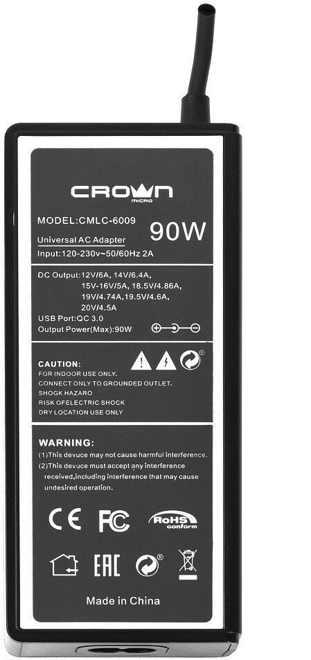 Type: laptop, compatibility: universal, connectors: 3.0 x 1.0 mm, 4.0 x 1.35 mm, 4.0 x 1.7 mm, 4.5 x 2.8 mm, 4.8 x 1.7 mm, 5.0 x 2.1 mm, 5.0 x 3.2 mm, 5.5 x 1.7 mm , 5.5 x 2.5 mm, 6.3 x 3.0 mm, 7.4 x 5.0 mm, 7.9 x 5.5 mm, output voltage: 12 V, 20 V, power
