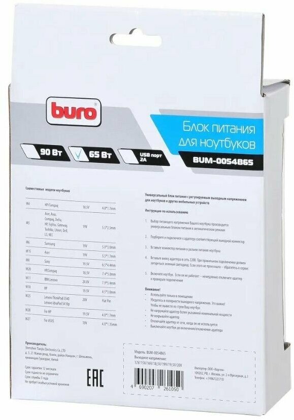 Description: Type: power supply, compatibility: ASUS, Acer, Alienware, Apple, DELL, Fujitsu, Fujitsu-Siemens, HP, LG, Lenovo, MSI, Packard Bell, Razer, Samsung, Sony, Toshiba, Xiaomi, connectors: USB Type-C , output voltage: 12V, 20V, 5V, 9V, power: 65W, max. current: