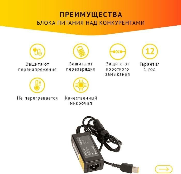 Type: laptop, compatibility: Lenovo, connectors: 11.2 x 4.5, output voltage: 20 V, power: 45 W, max. current: 2.25A, features: short circuit protection, overload protection, overvoltage protection