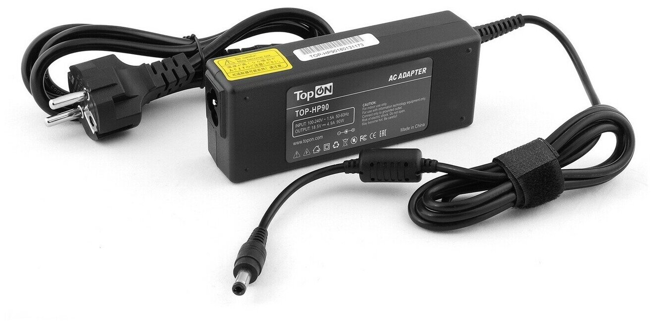 Charging AC adapter, TopON power supply for HP laptop, 18.5V, 4.9A, connector: 5.5 x 2.5 mm, 90W