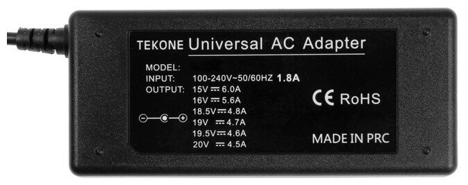Type: laptop, compatibility: universal, connectors: 4.8 x 1.7 mm, 5.5 x 1.7 mm, 5.5 x 2.1 mm, 5.5 x 2.5 mm, 6.3 x 3.0 mm, 6.5 x 4.4 mm, 7.4 x 5.0 mm, 7.9 x 5.4 mm , output voltage: 12V, 24V, power: 120W, max. current: 1.80 A, features: protection against