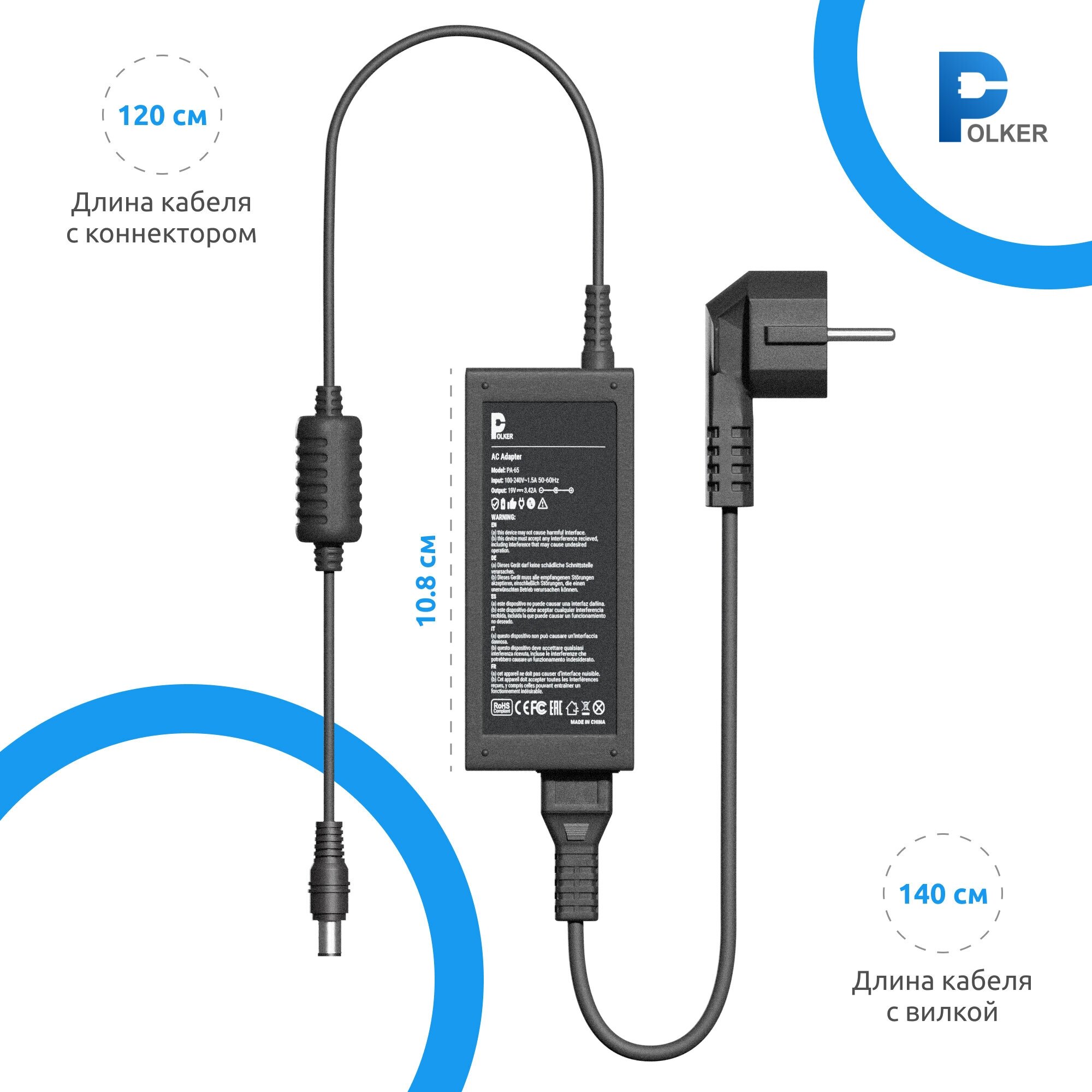 Type: for laptop, compatibility: MSI, output voltage: 19V, power: 65W, max. current: 3.42 A