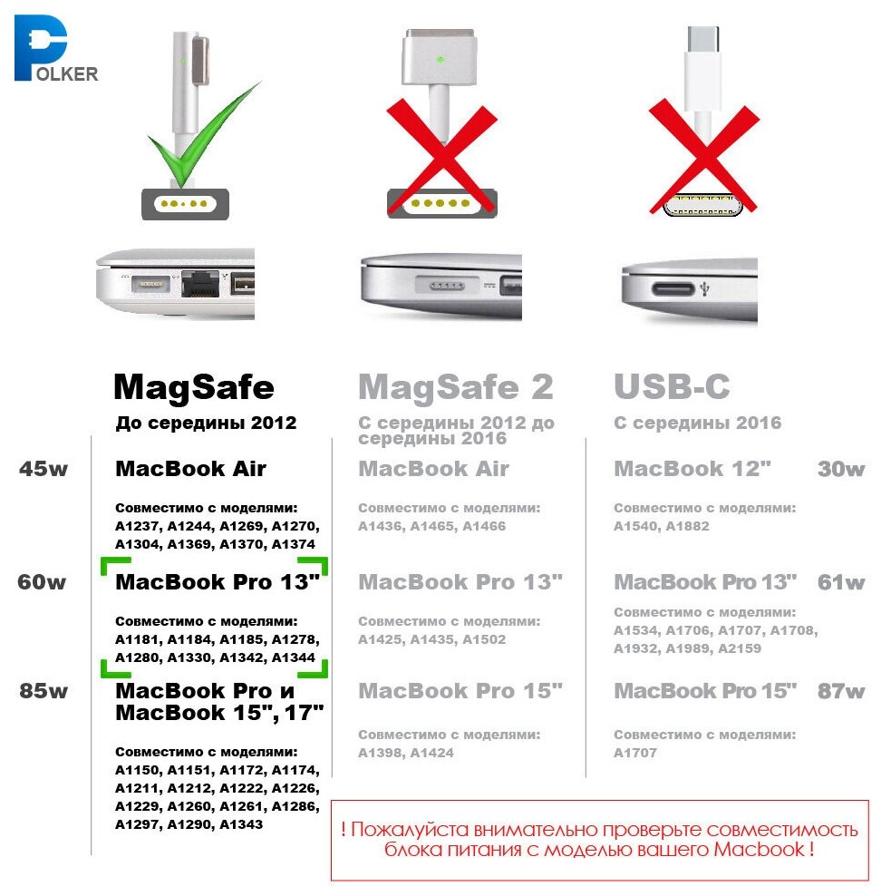 Type: power supply, compatibility: Apple, connectors: MagSafe, output voltage: 16.5 V, power: 60 W