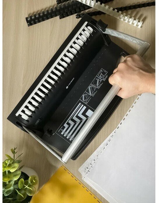 Drive type: mechanical, binding method: plastic spring, maximum spring/clamp diameter: 19 mm, maximum block thickness: 150 sheets, maximum number of punched sheets: 9 sheets, depth: 21 cm, width: 35