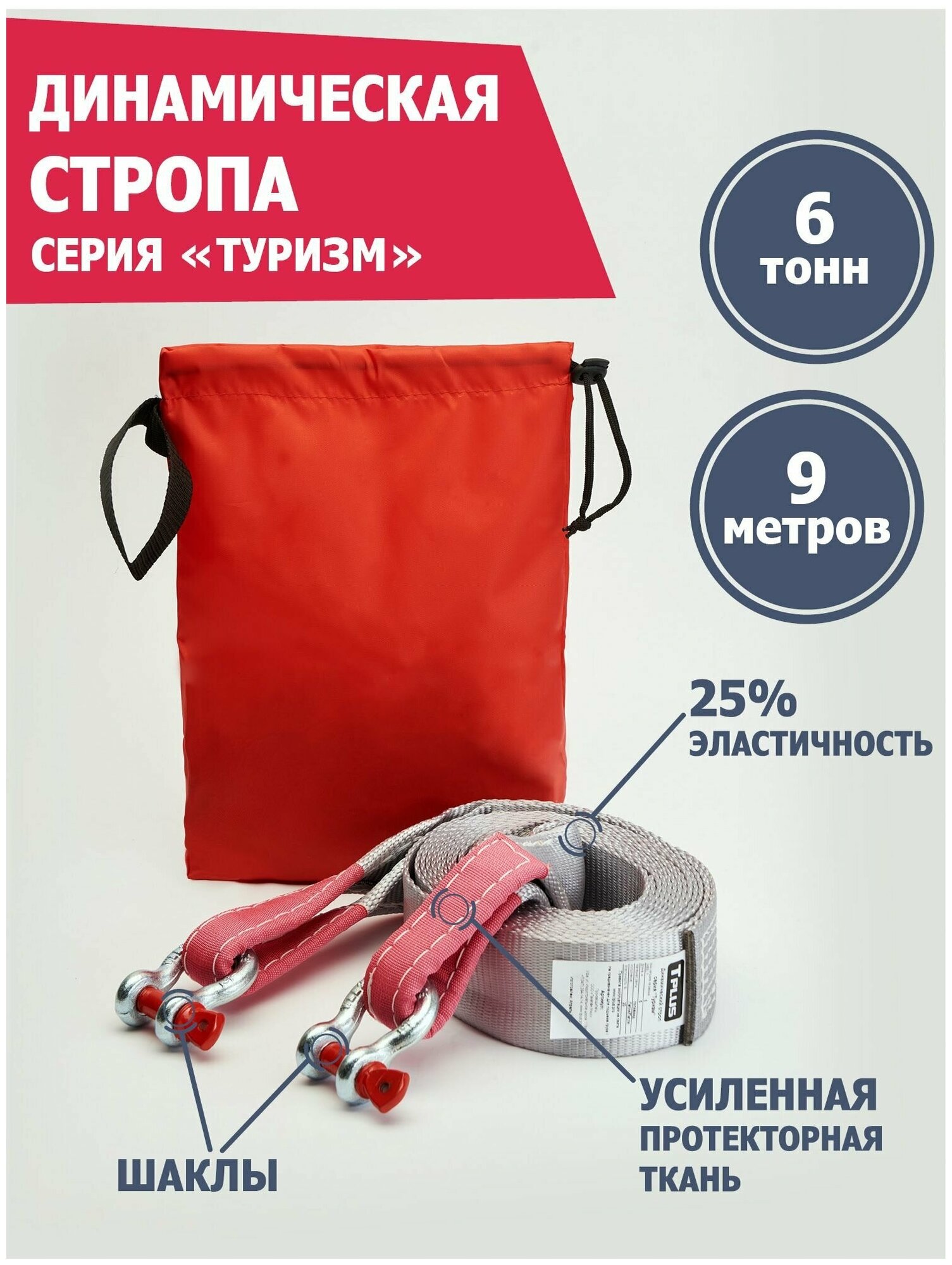 Dynamic lanyard Tplus tourism 6 tons, 9 meters, with shackles 2 ., T018174