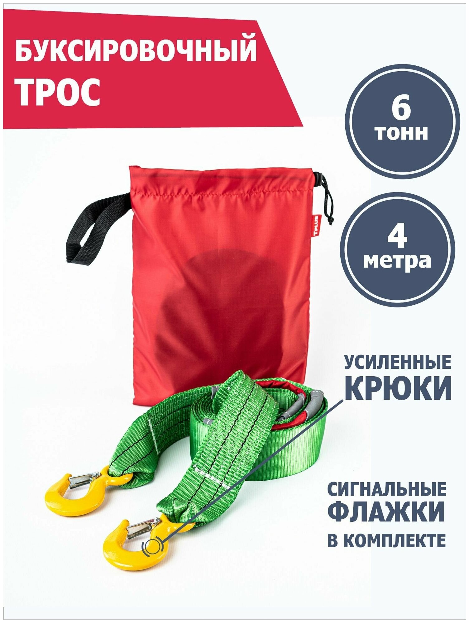 Towing strap 6/9 5 m/m up to 3 Hook/Hook with flags, Tplus