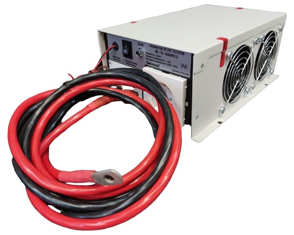 Inverter, 1500 W, waveform: sine wave, battery connection: terminals, input. voltage: 12V output. voltage: 220V, short circuit protection, reverse polarity protection, over temperature protection, overload protection, overvoltage protection, full discharg