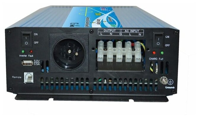 Inverter, 2000 W, waveform: sine wave, 1 USB, battery connection: terminals, input. voltage: 24V output. voltage: 220V, short circuit protection, reverse polarity protection, over temperature protection, overload protection, overvoltage protection, full d