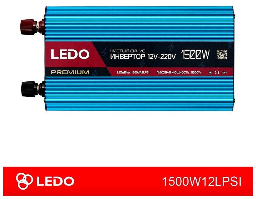 Inverter, 1500 W, waveform: sine wave, 1 USB, battery connection: wires without connectors, input. voltage: 12V output. voltage: 220V, built-in display, short-circuit protection, reverse polarity protection, overtemperature protection, overload protection