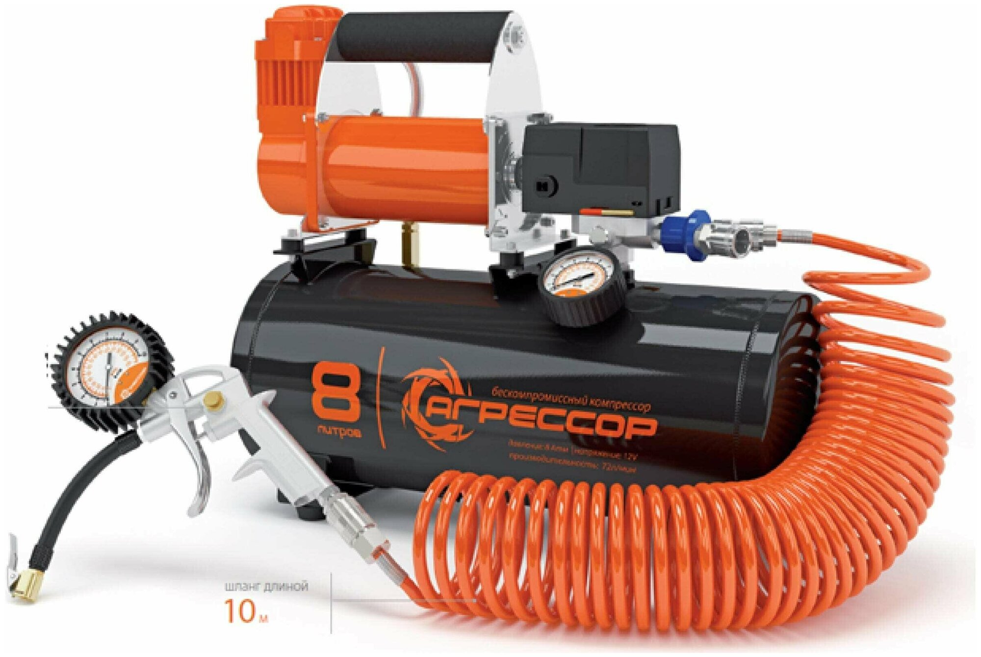 Power supply: from the cigarette lighter socket, From the car network 12V, From the battery, voltage: 12 V, input capacity: 14 l/min, power: 96 W, maximum pressure: 3.40 atm, compressor type: membrane, cable length p�