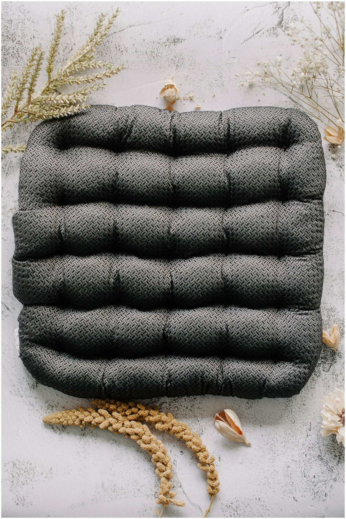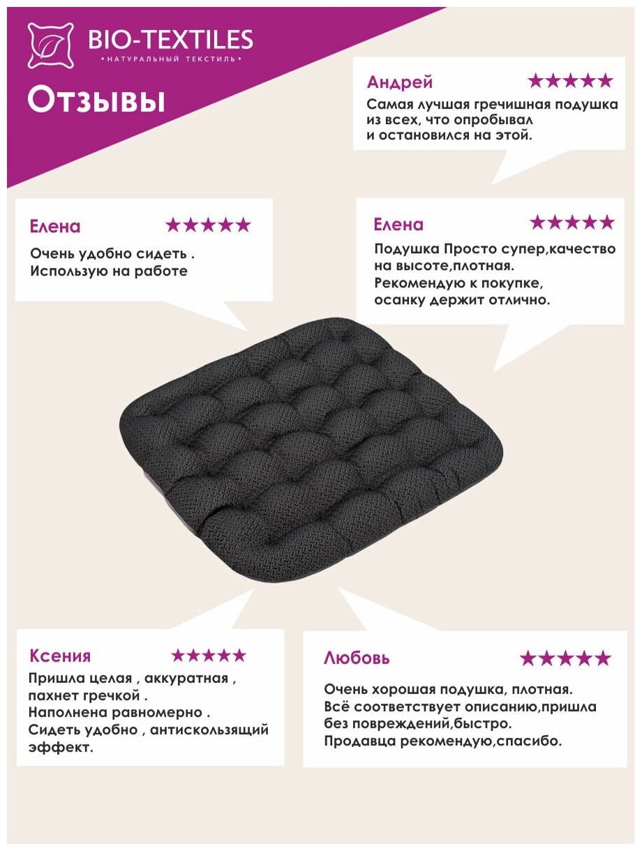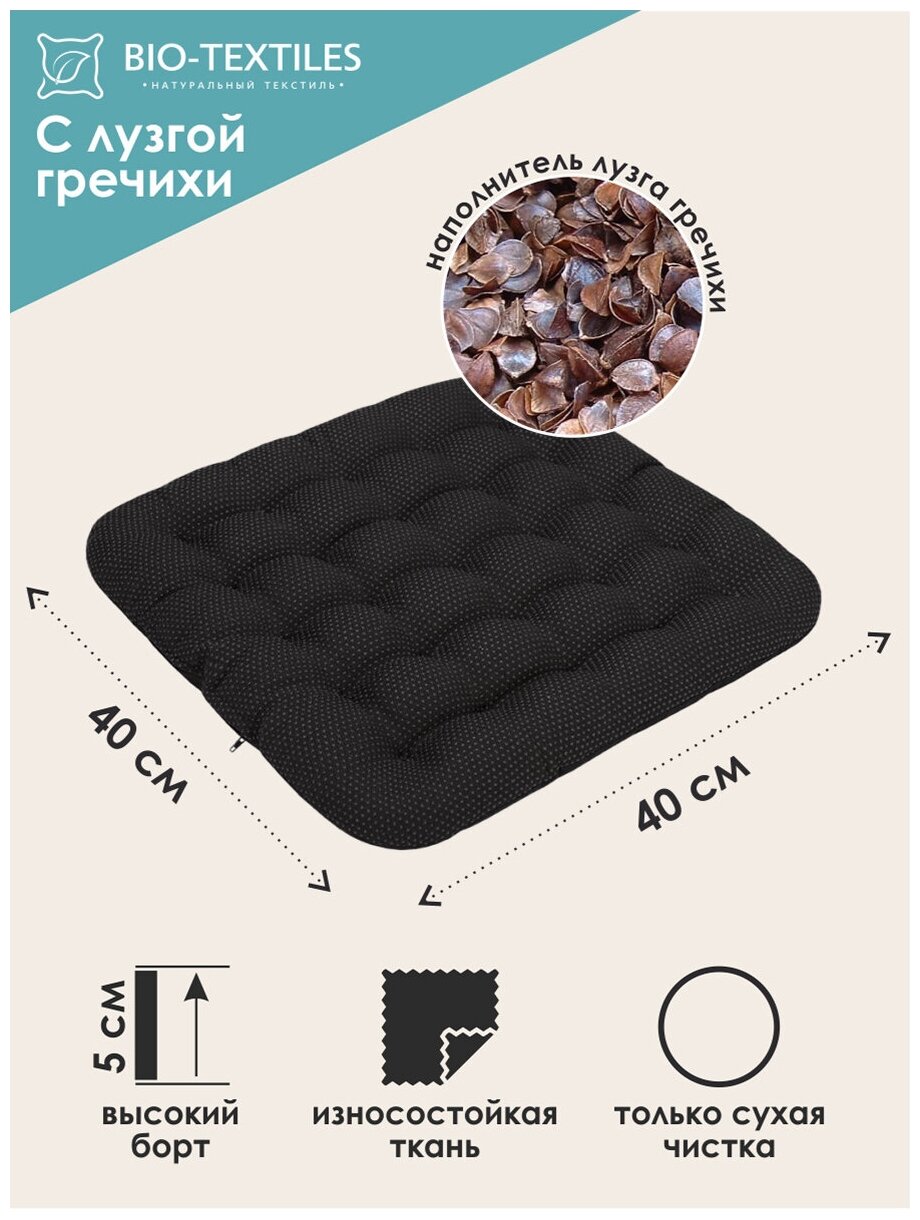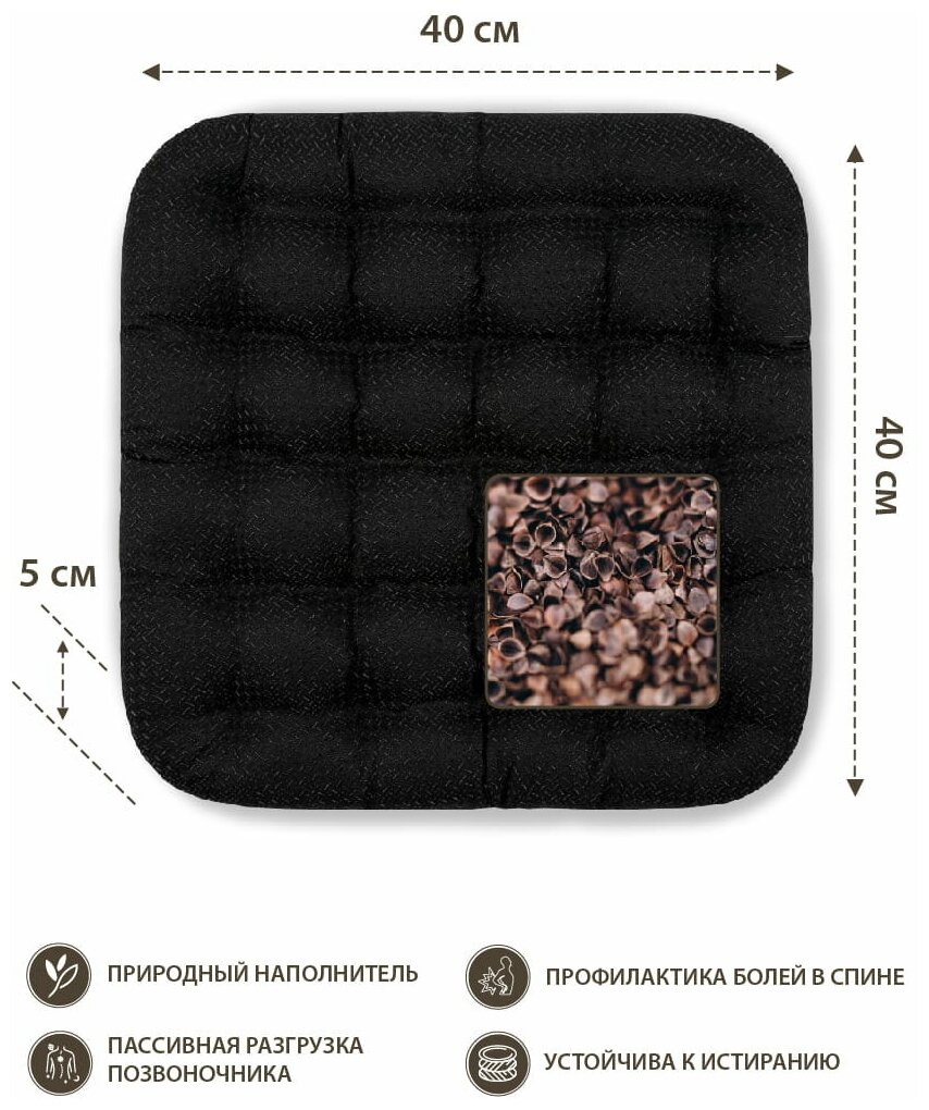 Purpose: on the seat, length: 40 cm, width: 40 cm, cover material: polyester, cotton, filling material: buckwheat husk, features: anatomical, orthopedic